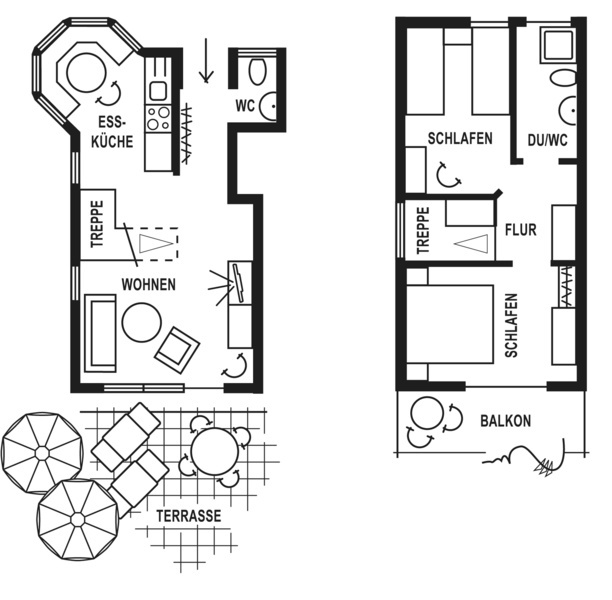 Beide Häuser verfügen über einen Balkon und eine große, möblierte Terrasse, WLAN und SAT-TV.