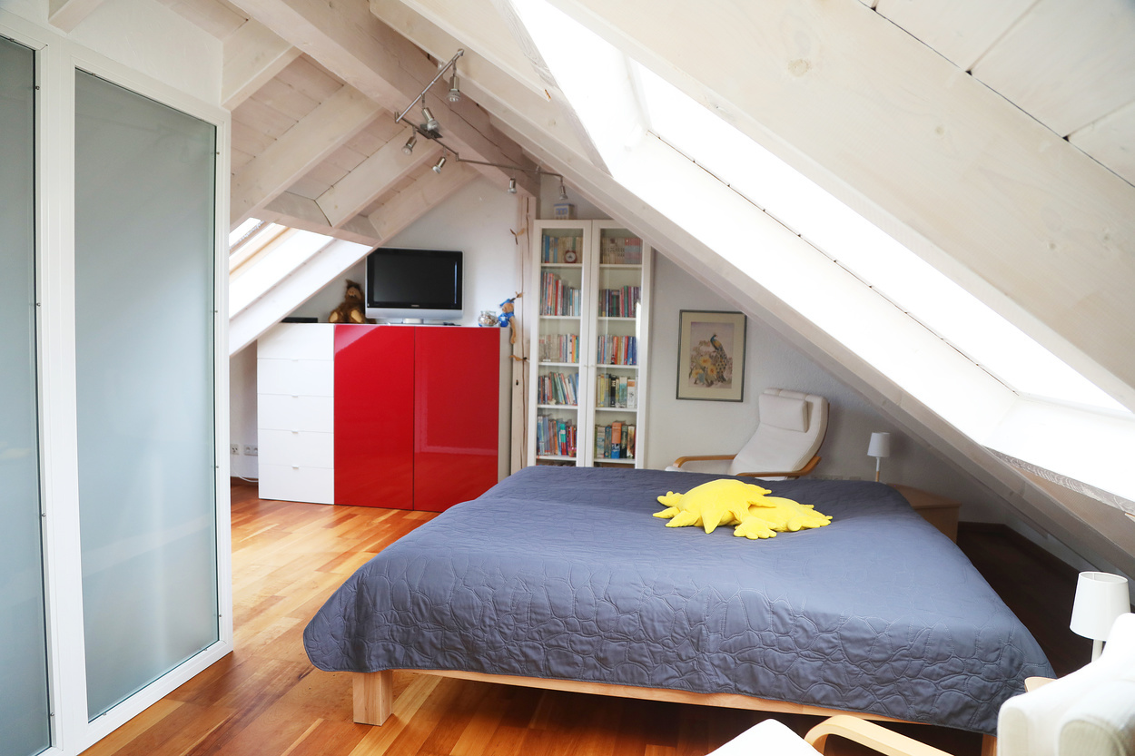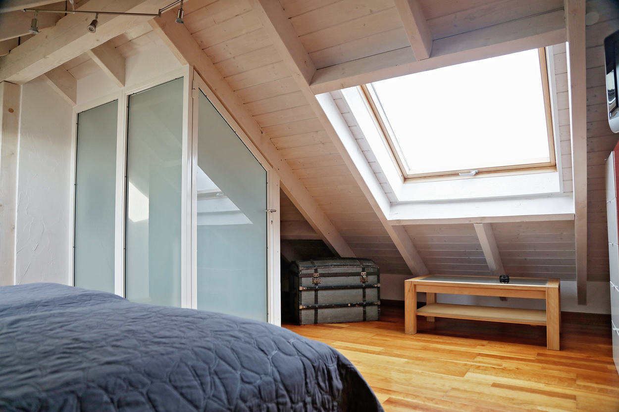 Es sind ein Elternzimmer mit TV, ein Kinderzimmer mit Doppelstockbett und einem Einzelbett, sowie ein Wohnzimmer mit TV vorhanden sowie eine separate voll ausgestattete Küche mit Kaffeemaschine und einem Balkon mit toller Aussicht. Alle Räume sind mit elektrischen Rollladen ausgestattet. Es gibt ein extra Zimmer mit einem Doppelbetten auf dem Dachboden, dass zusätzlich gebucht werden kann.