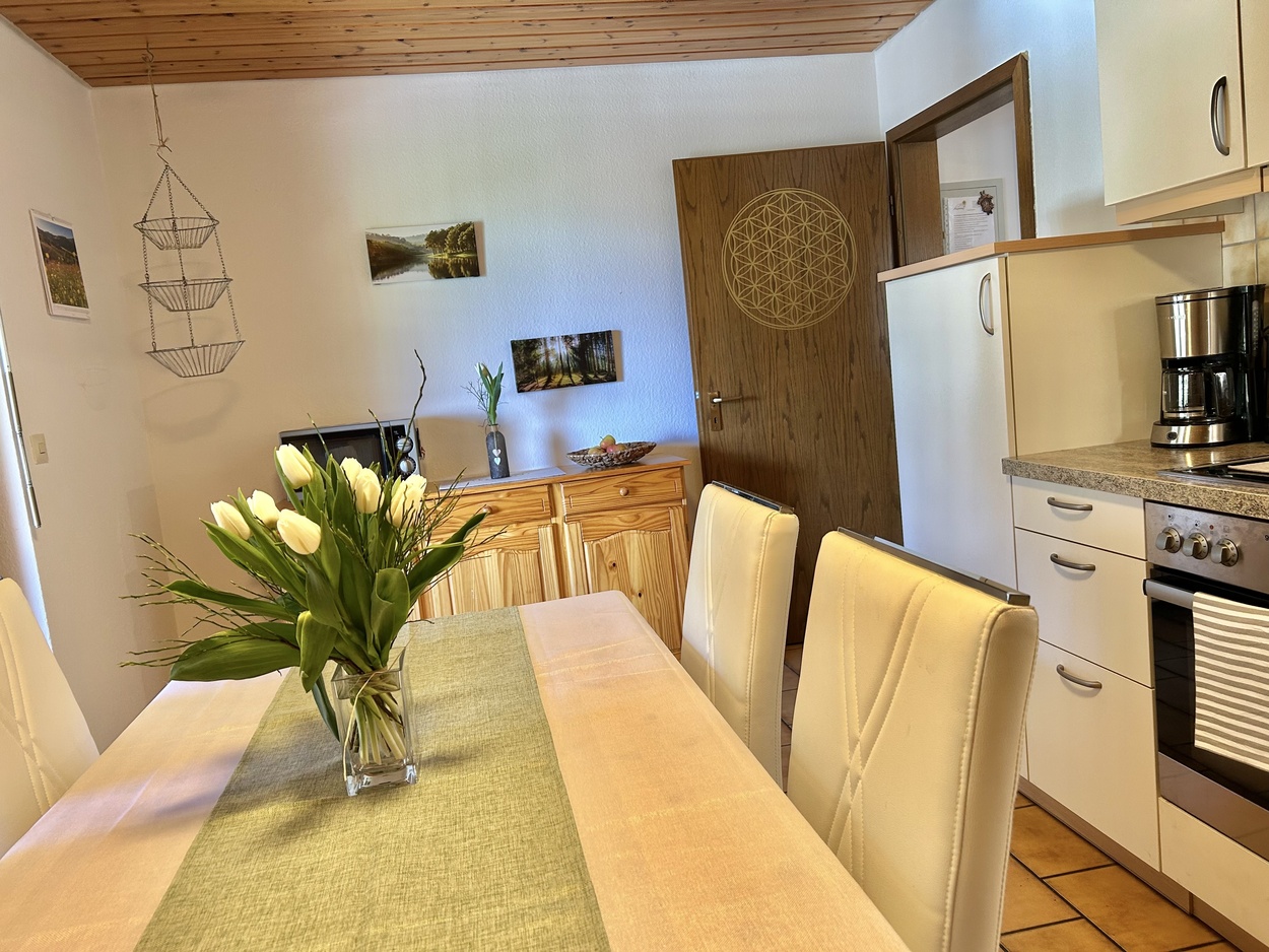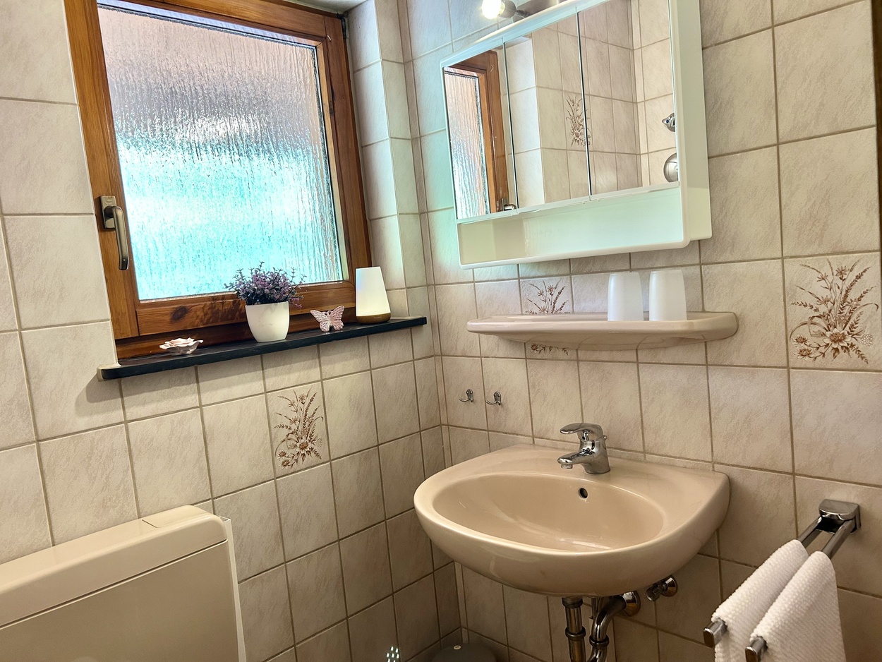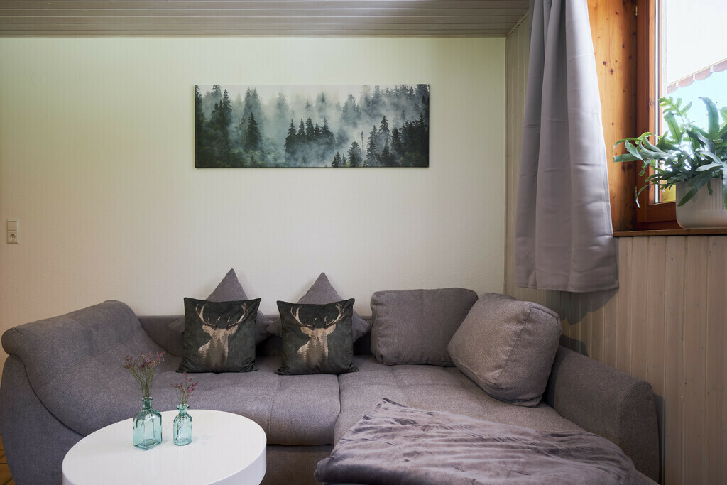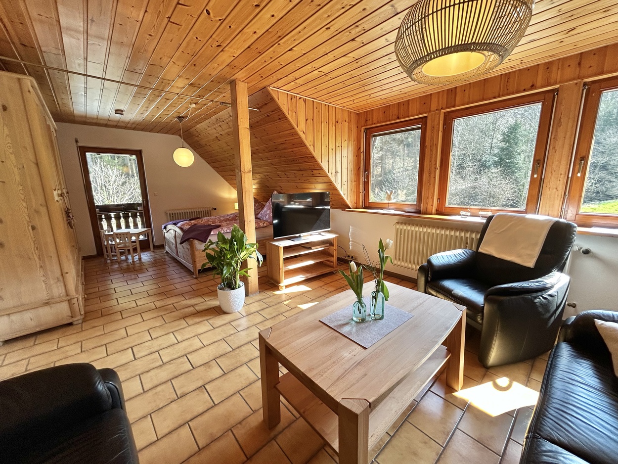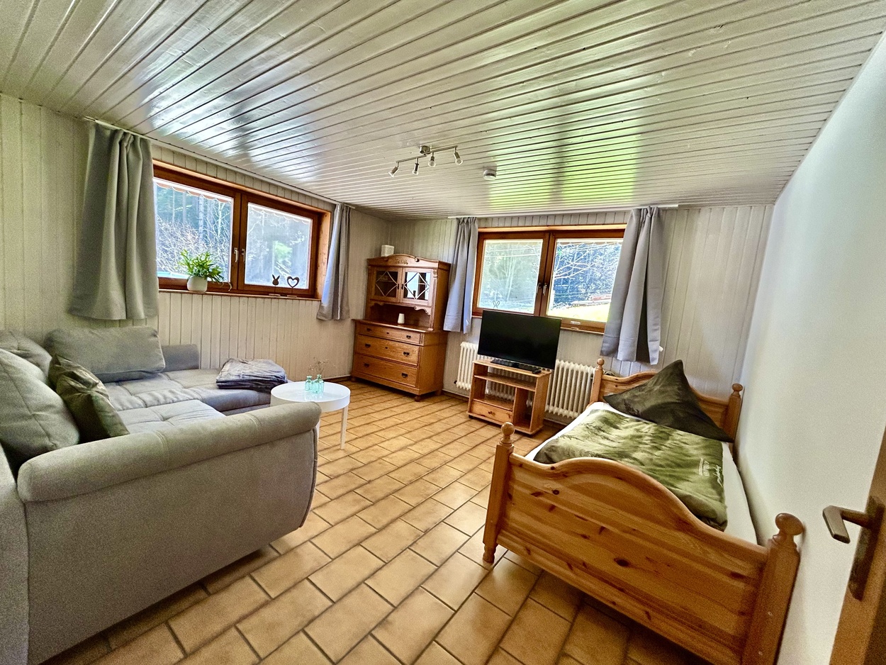 Unsere frisch renovierte, ebenerdige Ferienwohnung Bergquelle ist hell, freundlich und ideal für Familien. Sie bietet Platz für bis zu 5 Personen, ein großes XXL-Sofa zum Entspannen sowie eine Erdterrasse. Buchbar ab 5 Nächten.