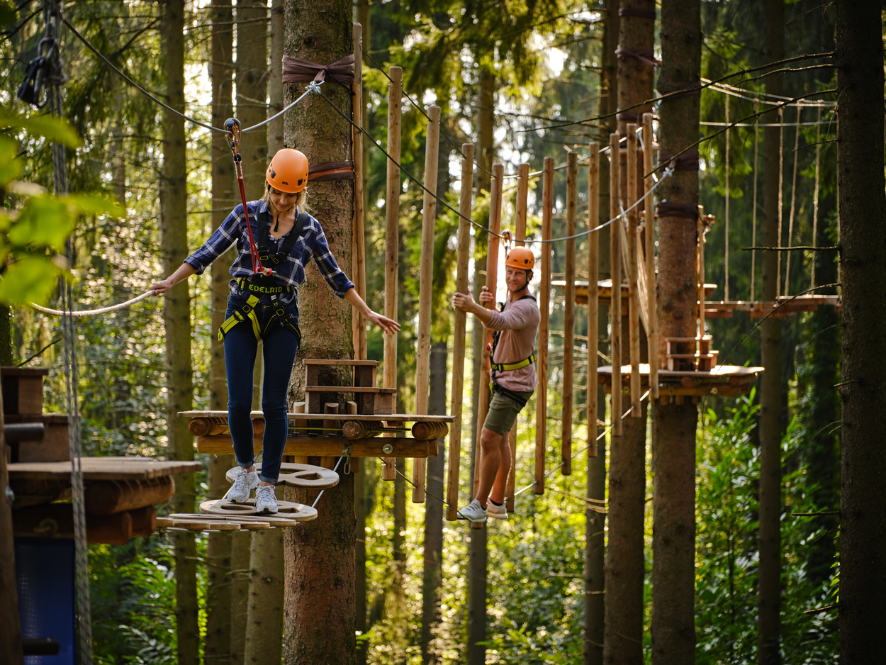 Kräfte mit der Natur messen und eine abenteuerliche Reise durch die Baumwipfel erleben.