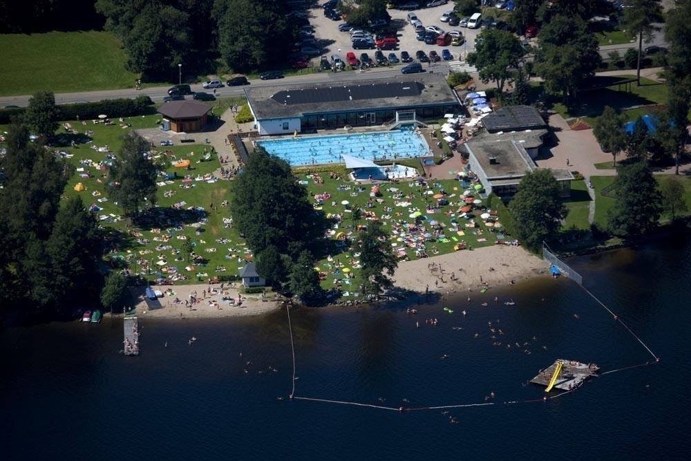 Von der gepflegten Liegewiese schaut man auf den See oder die umgebenden Wälder. Ein Gastronomiebetrieb sorgt für das leibliche Wohl der Gäste. Außerdem gibt es Tischtennis und eine Spielwiese für Volleyball.