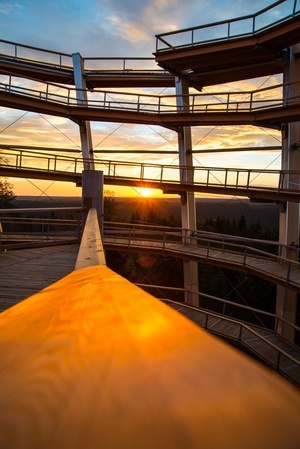 Im September 2014 wurde der Baumwipfelpfad bei Bad Wildbad auf dem Sommerberg eröffnet. Der 40 Meter hohe Aussichtsturm am Ende des Pfades ist der belohnende Höhepunkt des Ausflugs. Hier wird Ihnen eine traumhafte Weitsicht über die Baumwipfel des Schwarzwalds ermöglicht. Der Aufbau ist einer Wendeltreppe gleich, jedoch ohne Stufen. Durch den barrierefreien Aufgang wird der Ausblick auch Familien mit Kinderwagen und Rollstuhlfahrern nicht verwehrt.Zur höchsten Aussichtsplattform im Turm gelangen Sie über einen ca.1.250 Meter langen Wanderpfad durch den Wald, bei einer max. Steigung von 6%. Der Pfad behandelt die Themen des Lebens im Schwarzwald. Sie erhalten an lehrreichen Informationspunkten durch Sehen und Fühlen einen Einblick in die Natur und lernen über das Leben im Schwarzwald. Für die kleinen Abenteurer befinden sich auf dem Baumwipfelpfad Erlebnis- und Spielstationen, die das Entdeckerherz höher schlagen lassen. Der Ausflug kann wunderbar mit der Sommerbergbahn und einer Rast in den Gastronomiebetrieben verbunden werden.